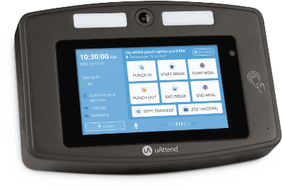 Voice controlled punching eliminates the time clock as a commonly shared surface, giving you more control over workplace safety.