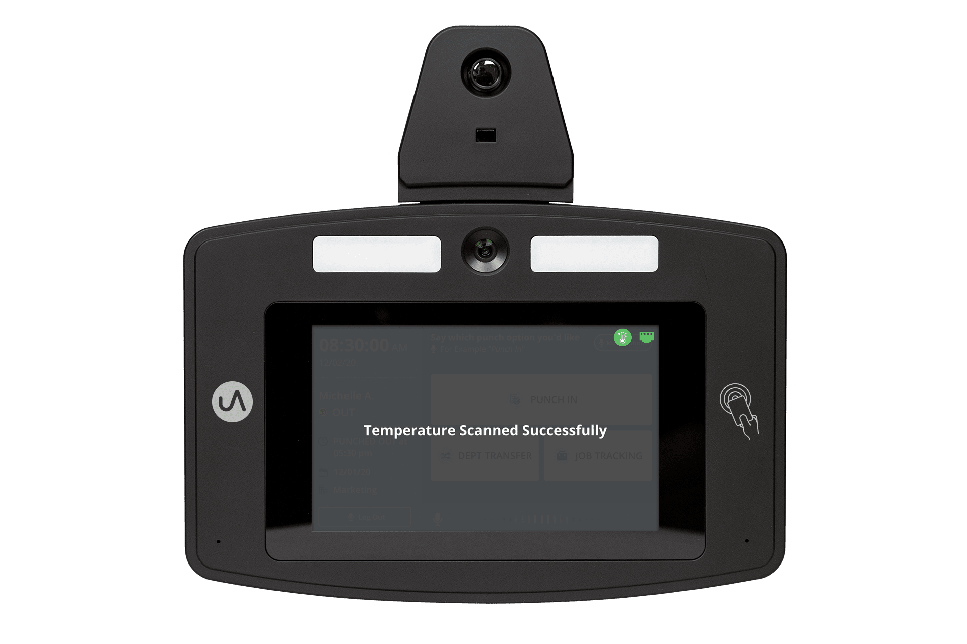 Elevate workplace safety with uAttend’s DR2500. Featuring integrated voice recognition, advanced facial identification, and a built-in *temperature reader for complete contact-less and advanced workforce management.