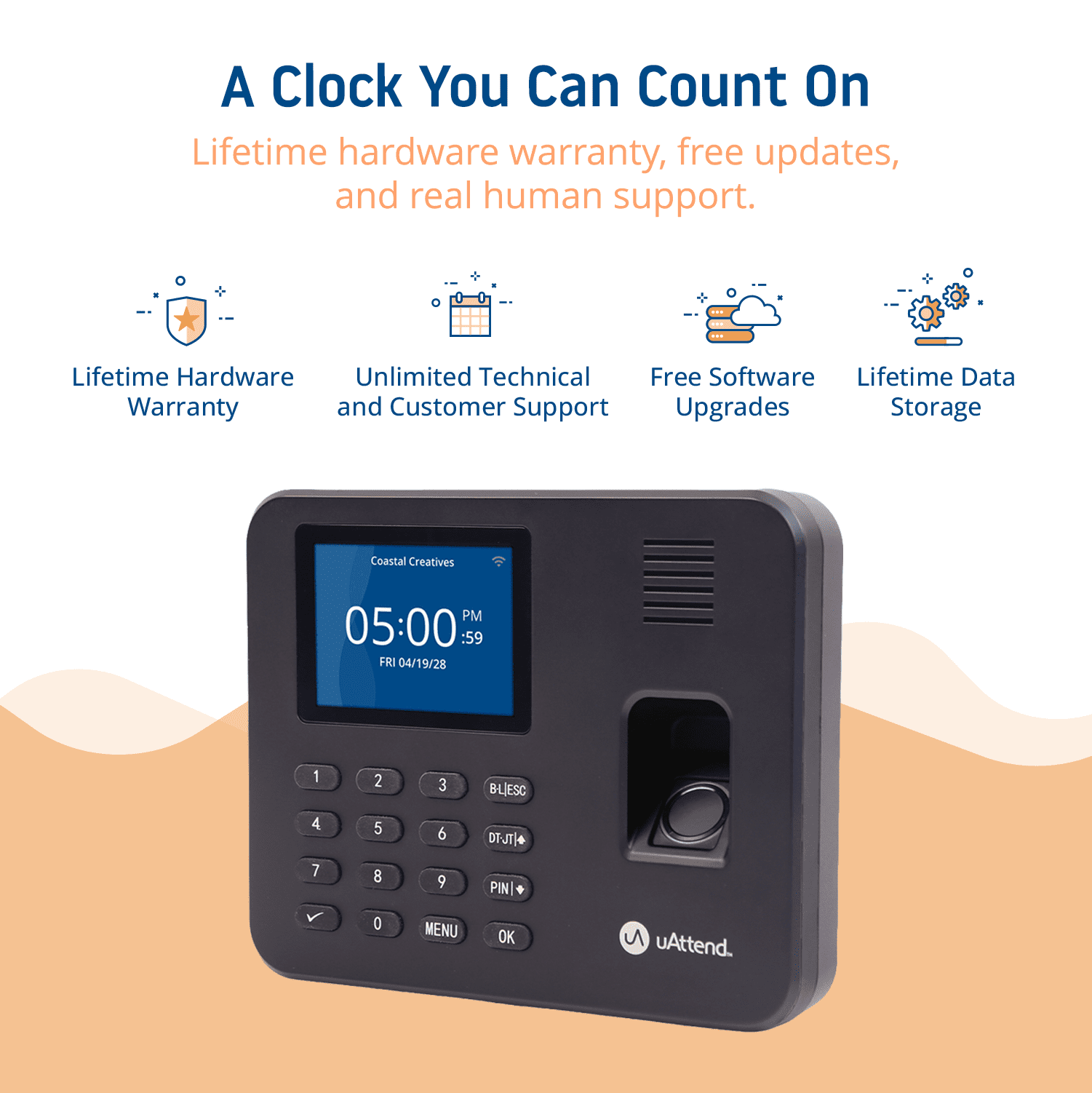- Fingerprints, PINs, and device settings can be managed directly on the clock without a computer.
